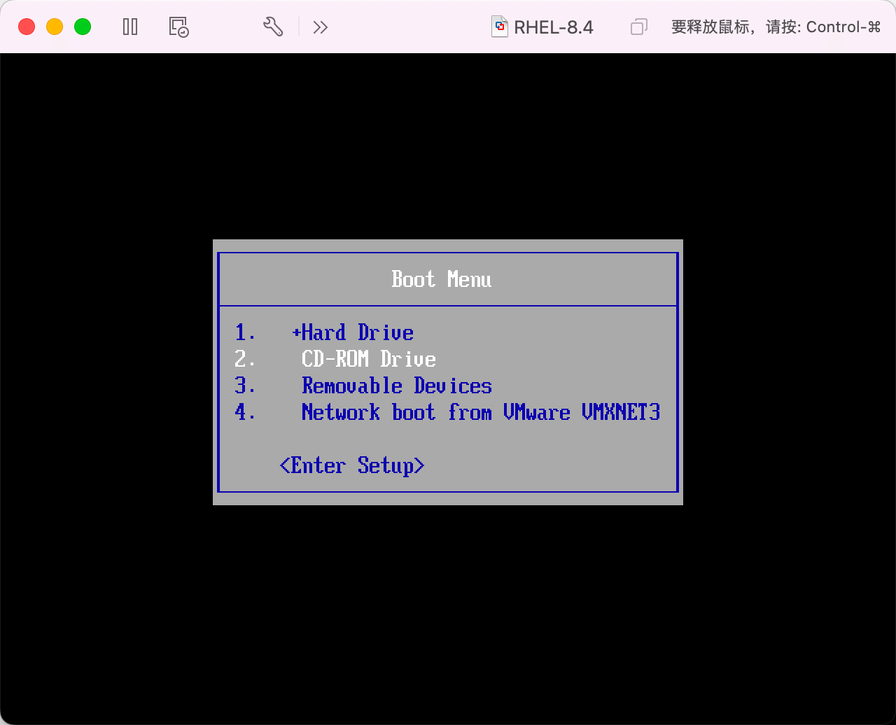 虚拟机可以在开机的时候看到Vmware的加载界面的时候按esc,选择从光盘启动;也可以在关机状态下从菜单选择启动到固件,去修改boot启动项;物理机可以在开机的时候按F12(不同厂商的主板不一样)选择从光盘启动,或者在开机的时候按F2(不同厂商的主板不一样)进去bios修改启动项