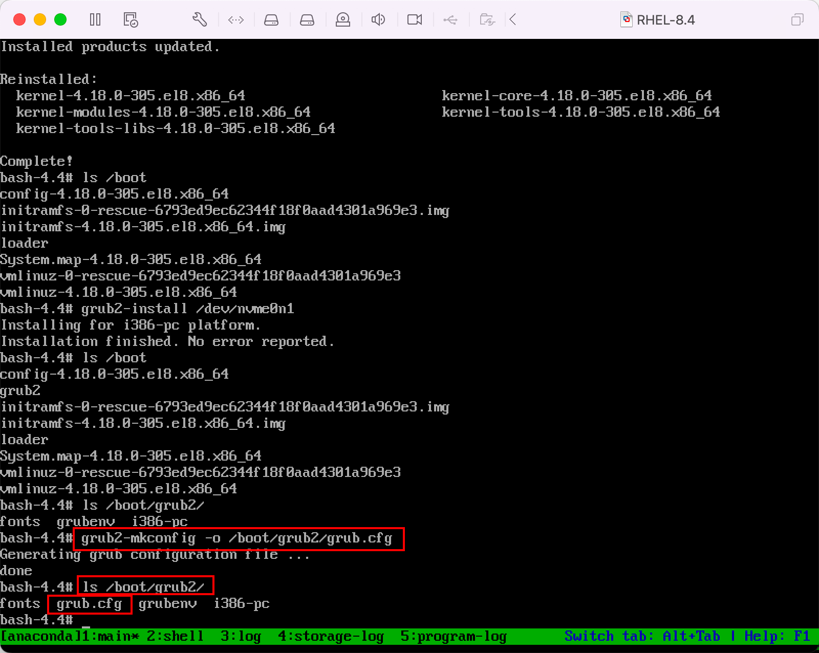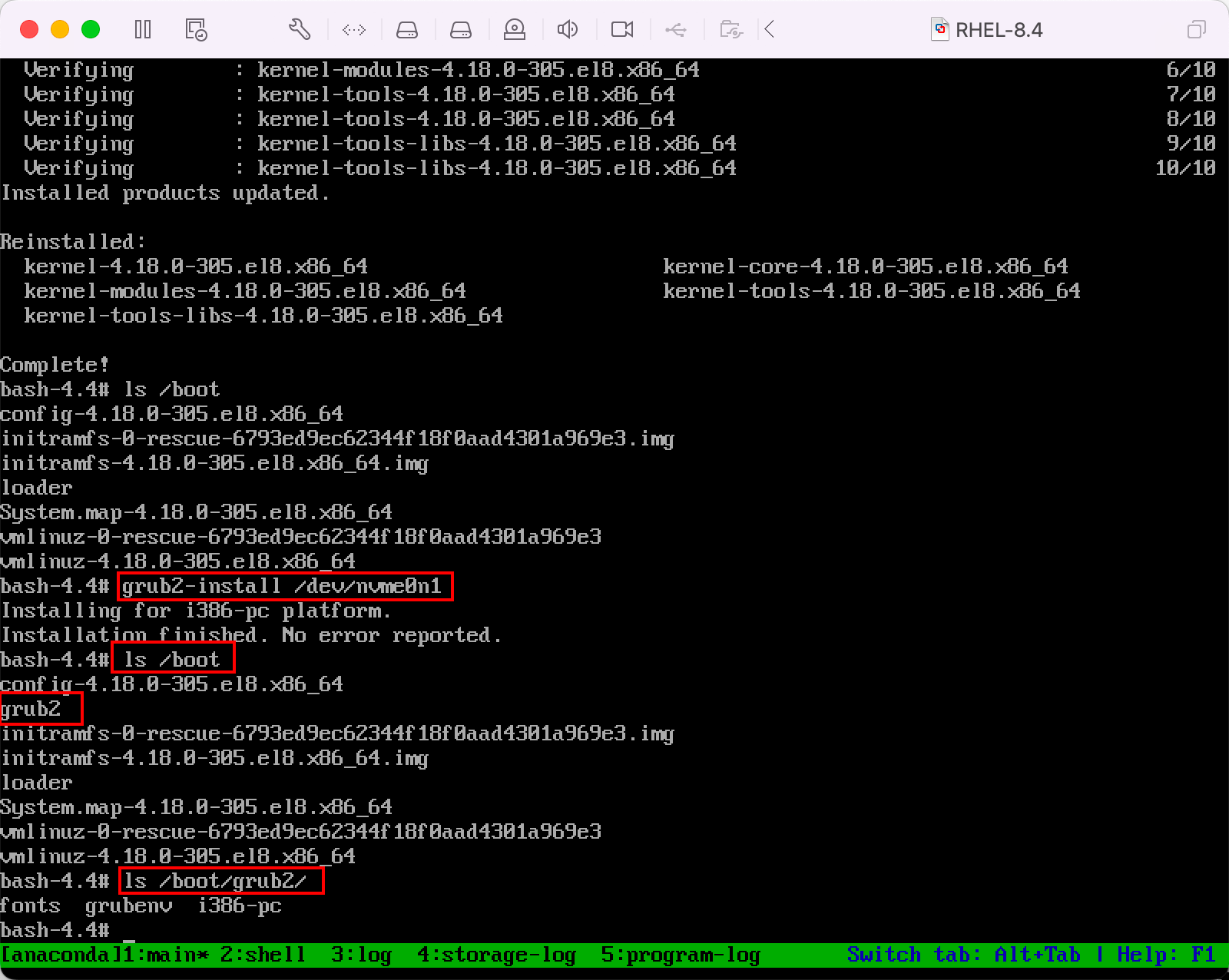 执行grub2-install /dev/nvme0n1生成grub引导程序要执行的文件,也就是/boot/grub2目录 执行完之后,此时还缺少grub启动菜单grub.cfg